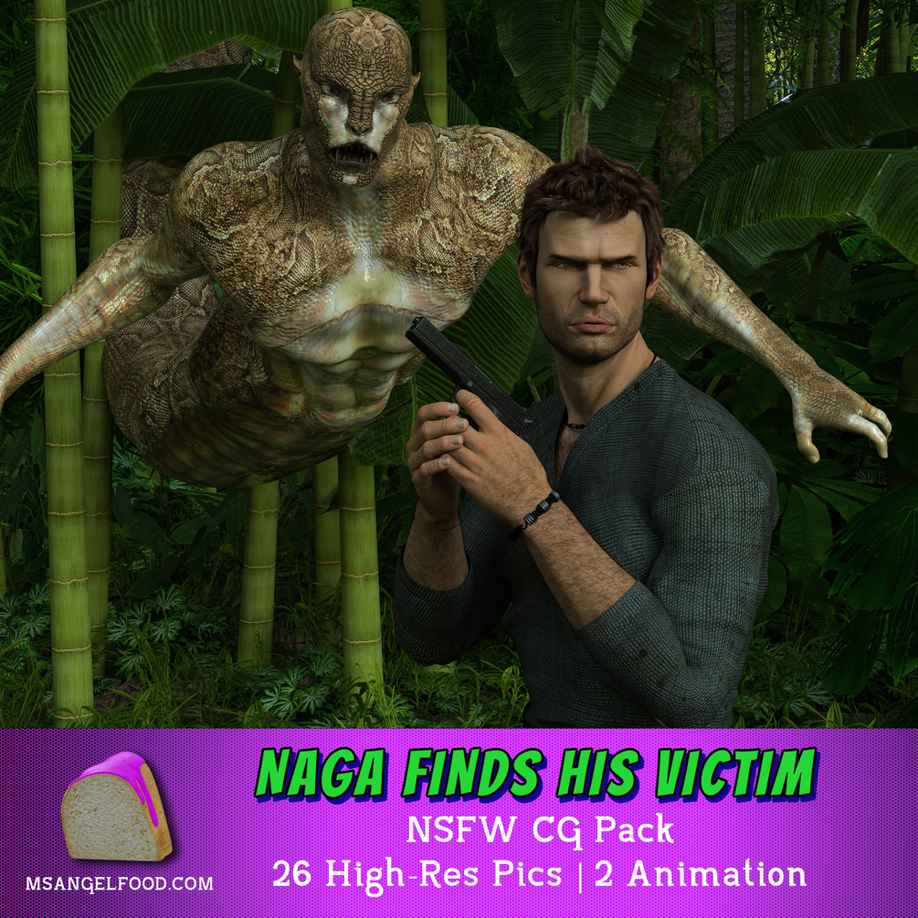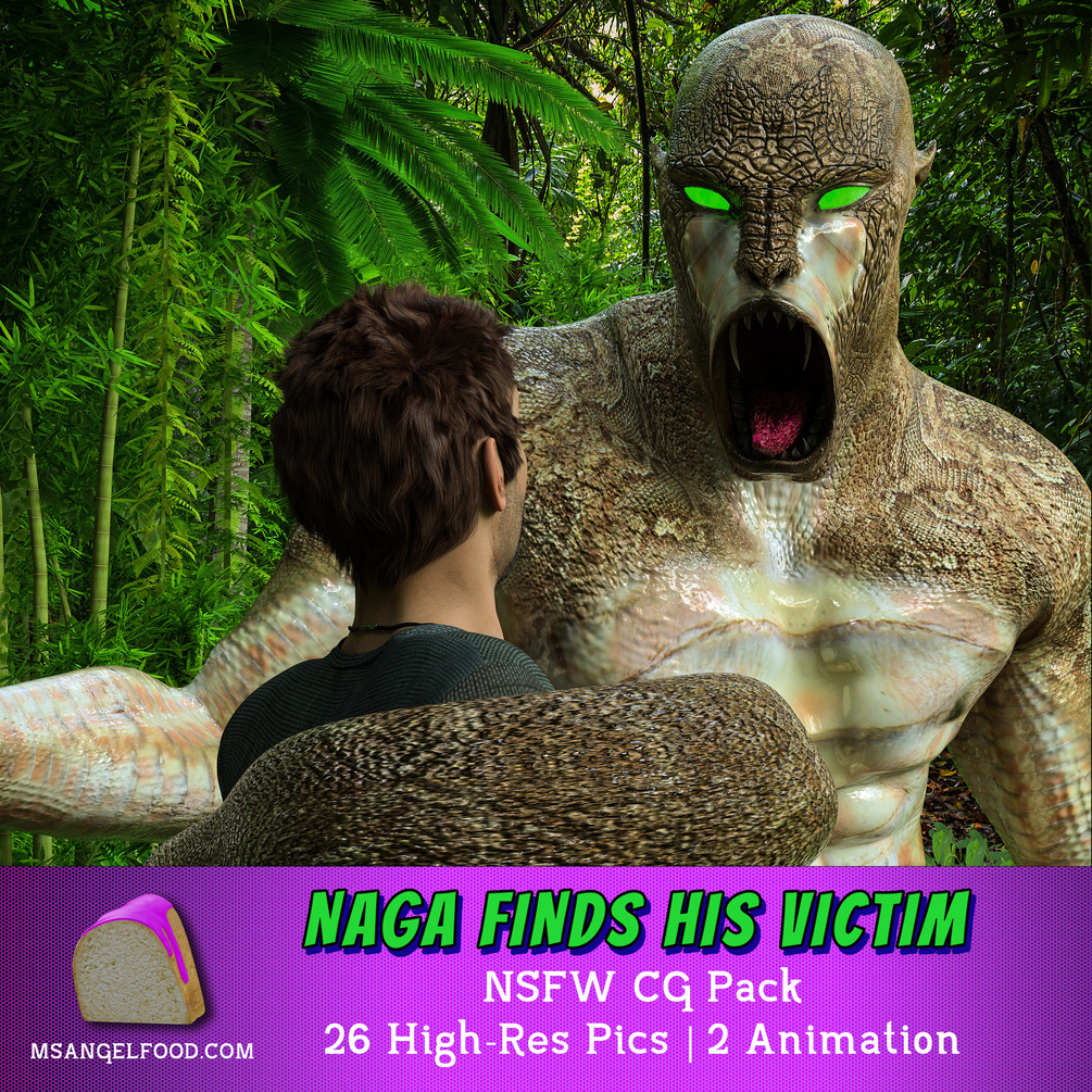 Enjoy the savory delight as the Naga wraps himself around his muscular victim, hypnotizing him, tickling him, then devouring him.