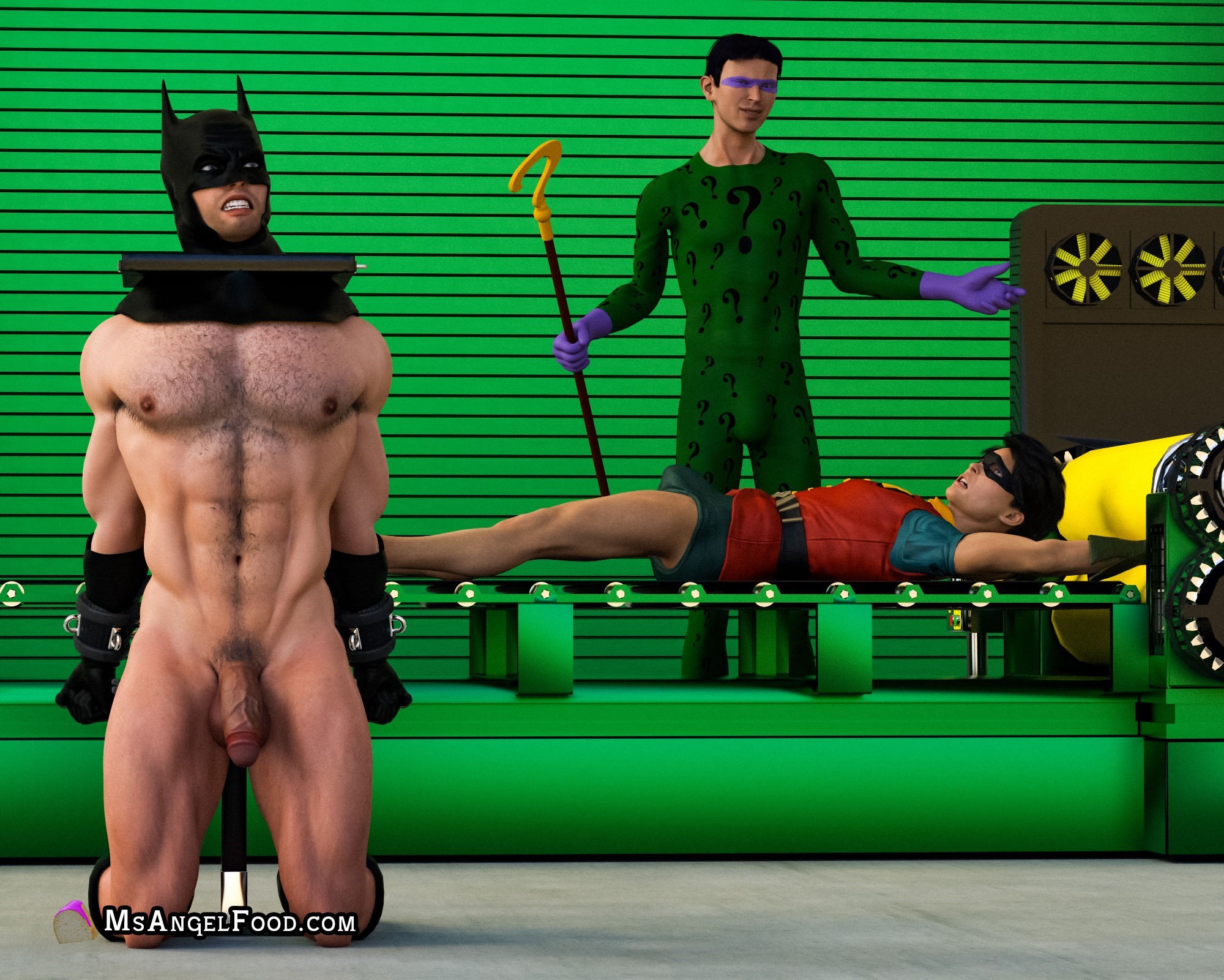Enjoy 105+ images of dynamic domination, with bondage, milking, oral, ball busting, and two heroes flat as comic book pages.
