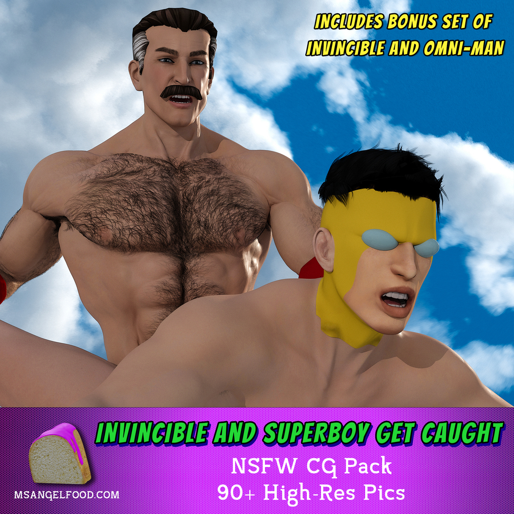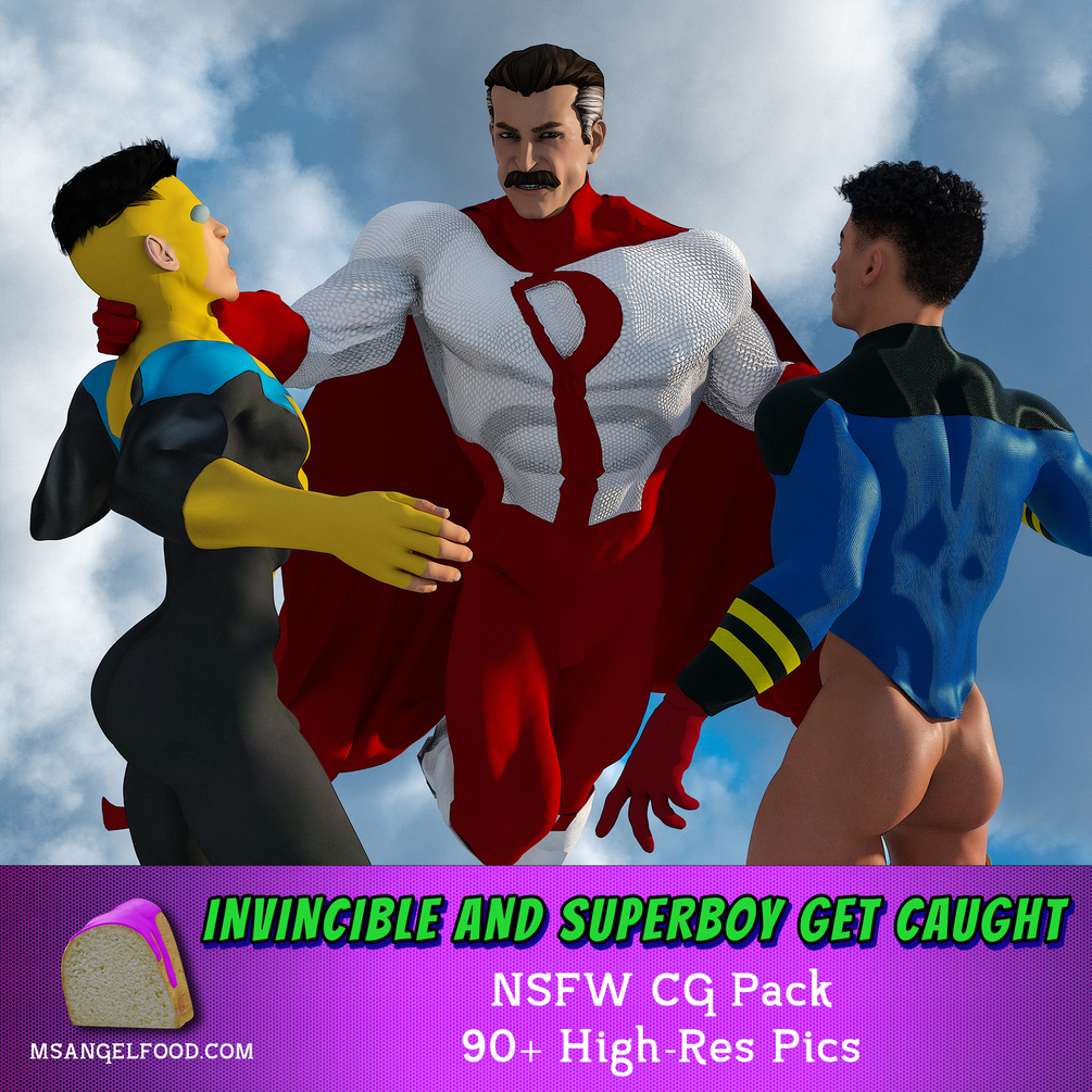 Fly high with more than 90 high-res images of Invincible, Superboy, and Omni-Man in this domination filled three-way in the sky, complete with bondage, spit roasts, and facials.