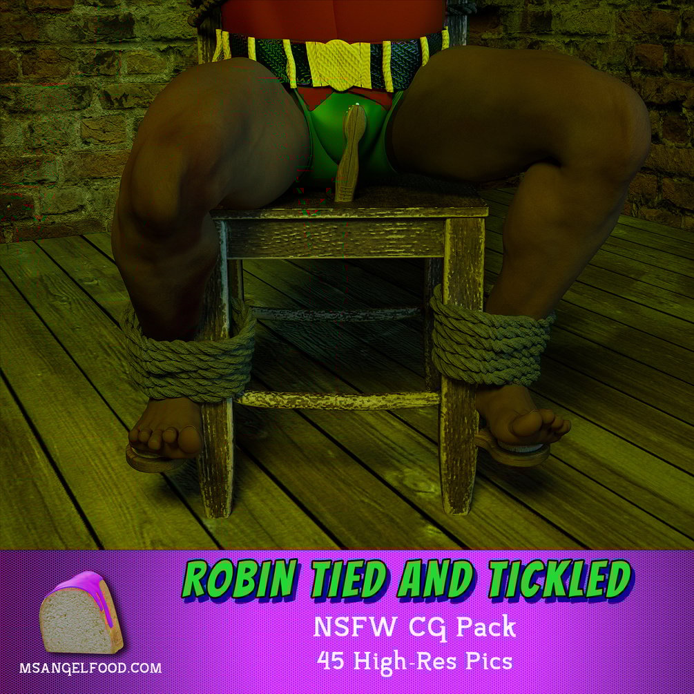 Robin finds himself in a worn down warehouse, tied to a chair, with a gag lodged in his mouth. He becomes more panicked when the wooden chair starts to morph, revealing brushes under his feet and between his legs. These brushes seem determined to tickle torture him until he bursts.
