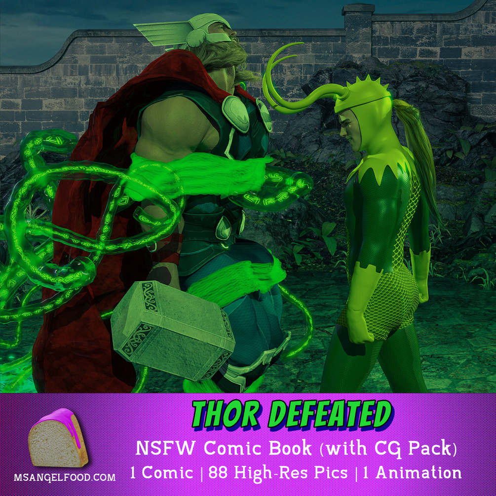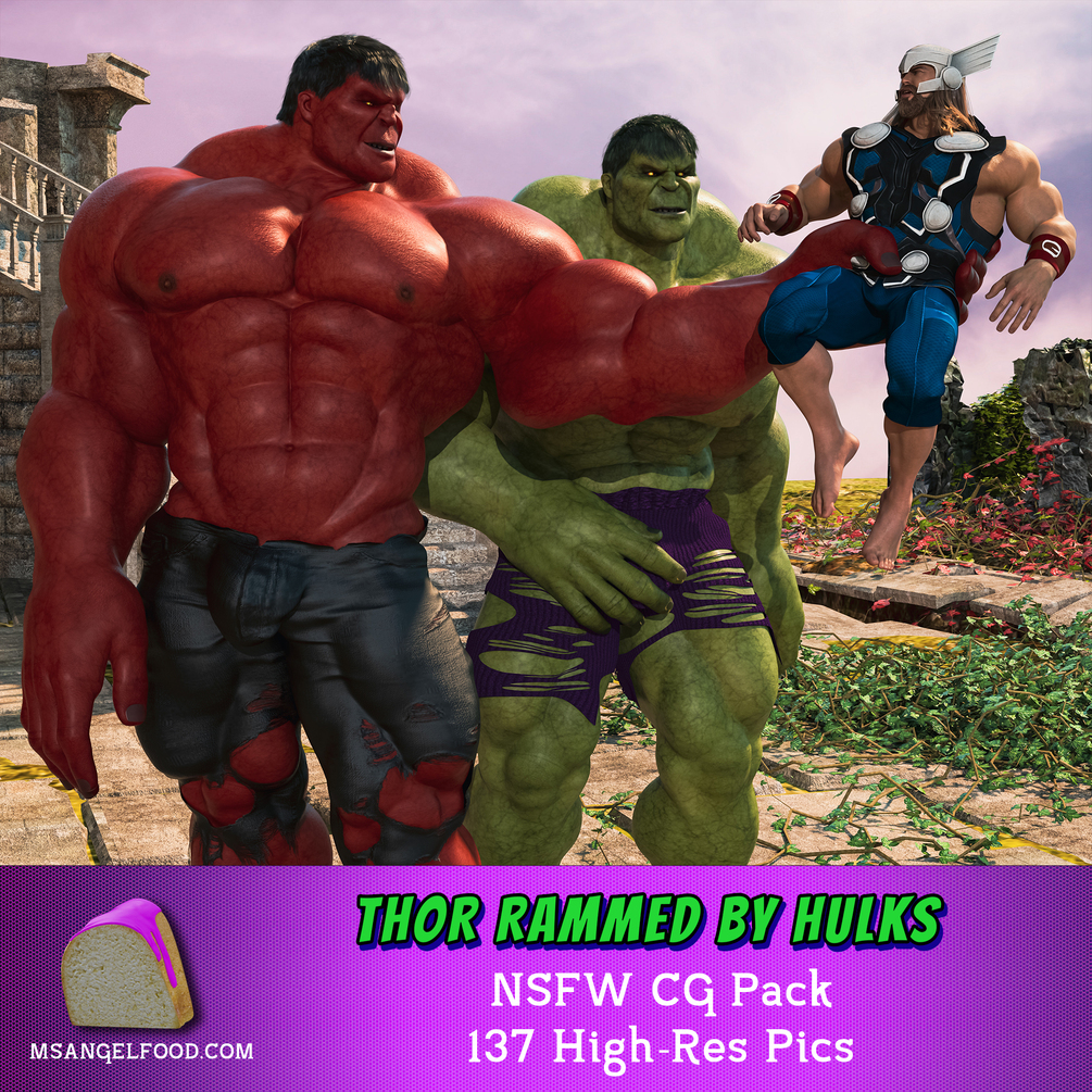 Loki has captured two men, and Thor's here to save them. However, Loki has set a trap for the God of Thunder. The men transform, massively growing their muscles until they're both Hulk-sized monsters. Thor is no longer there to rescue them, but to satisfy their physical needs.